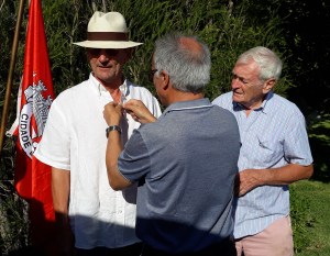 Rainer accepted his pin from David Trubshaw and visiting Rotarian Joäo Alves from RC Praia de Rocha.