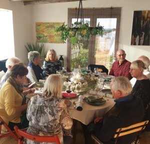 Here we all are all fresco-ing in the hillside garden of Sue and David Butler-Cole and gulping down draughts of fresh mountain air in a clear evening glow. Is this not magic?